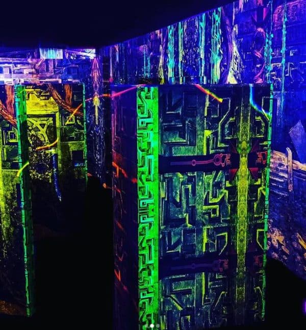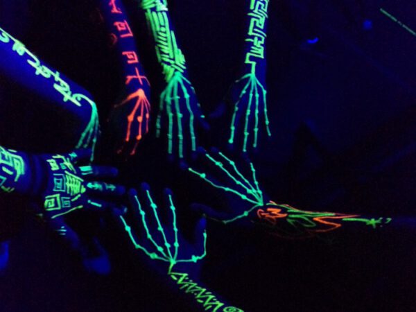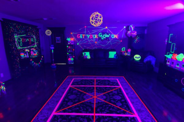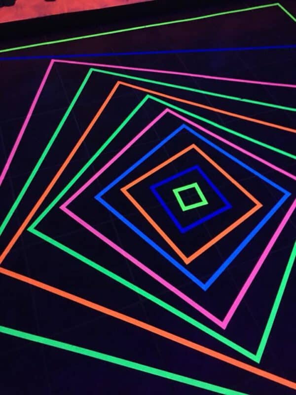 Met speciaal UV-tape kun je patronen op de muur of vloer creëren en met bodypaint (te koop bij SoLow) zorg je voor een nog veel vetter effect. Bij de Solow kun je ook spuitbussen en tubes met neon verf krijgen, zo maak je de leipste patronen op de muur of vloer!