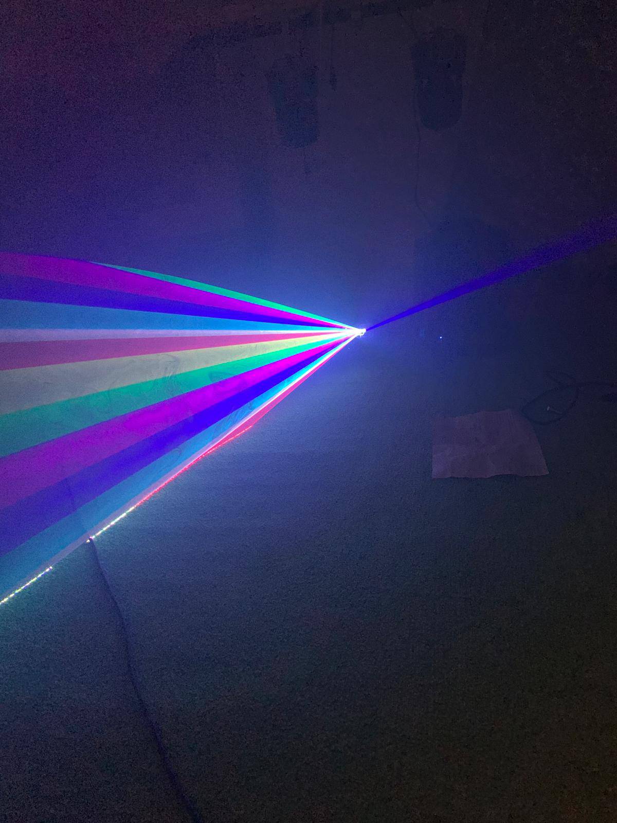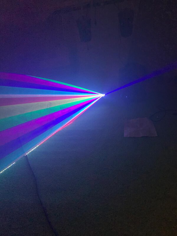 Deze full-color kleuren laser met een vermogen van 500 mW is klein maar fijn! Het is de krachtigste uit de collectie en heeft de meeste mogelijkheden en kleuren. Deze laser kan de kleuren kleuren rood, groen, blauw combineren, waardoor je eigenlijk elke kleur ziet in deze show! Heeft een aantal hele vette patronen, van bewegende kegels tot een heel vlak wat van boven naar beneden gaat!