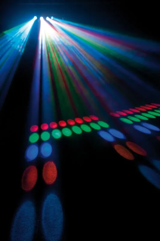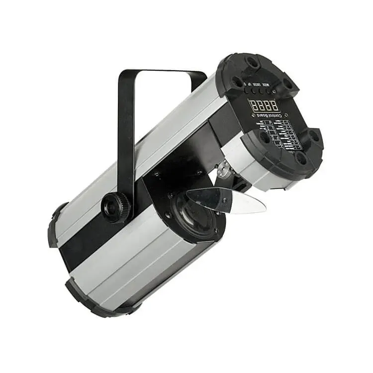 De DMX modus zorgt ervoor dat je de lamp zelf volledig kunt inprogrammeren. Je kunt zelf pre-sets maken, waardoor je alleen maar op een knopje hoeft te drukken voor een bepaald effect. Ook is het mogelijk om de lamp live te besturen. De lamp heeft 5 kanalen: stroboscoop, patroon, patroonrotatie, horizontale beweging en verticale beweging. Kijk voor meer uitleg over hoe DMX en een DMX controller werkt onderaan deze pagina.